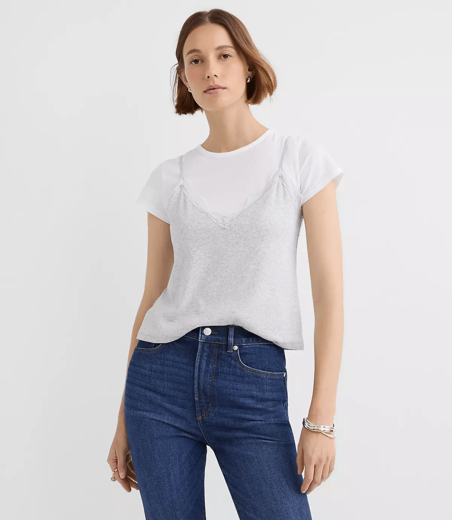 Loft! There are so many button downs that, dare I say, look much like Sezane! Again, more chic details than what has been put out lately. And of course I had to add the two-in-one tank over tee moment… While others wore one (or two!) lace tanks under their Hollister tees or Lacoste polos, I was wearing a spaghetti strap over a snug, unbranded tee. Glad to see a little nod to that niche fashion choice.