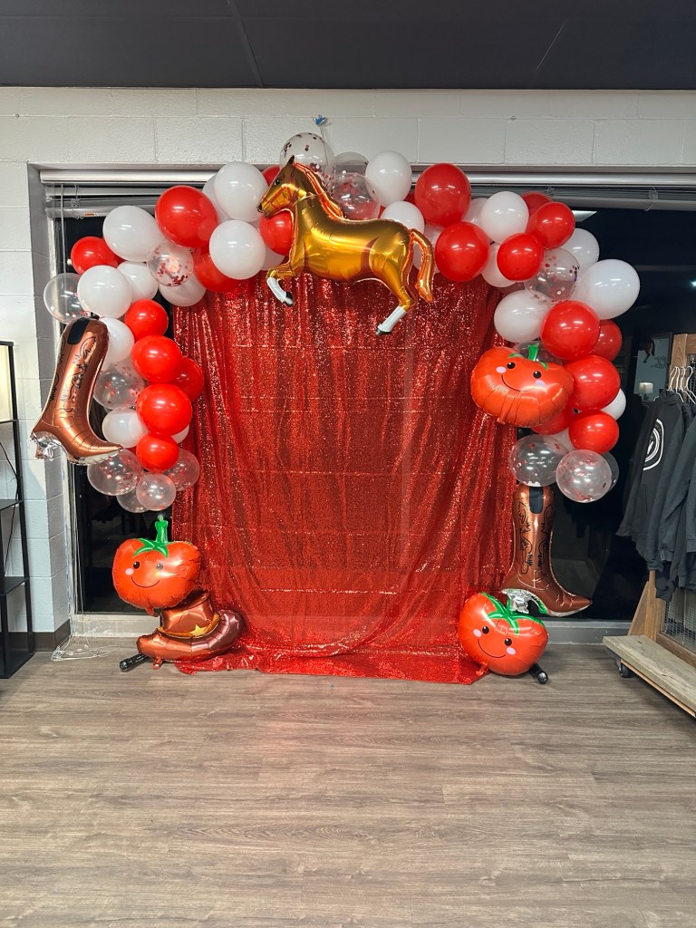 How cute are these tomatoes!! Totally on theme, right? I also grabbed a red sequin backdrop for a little glam.
