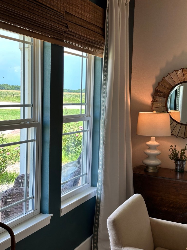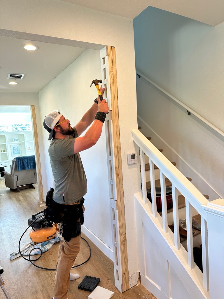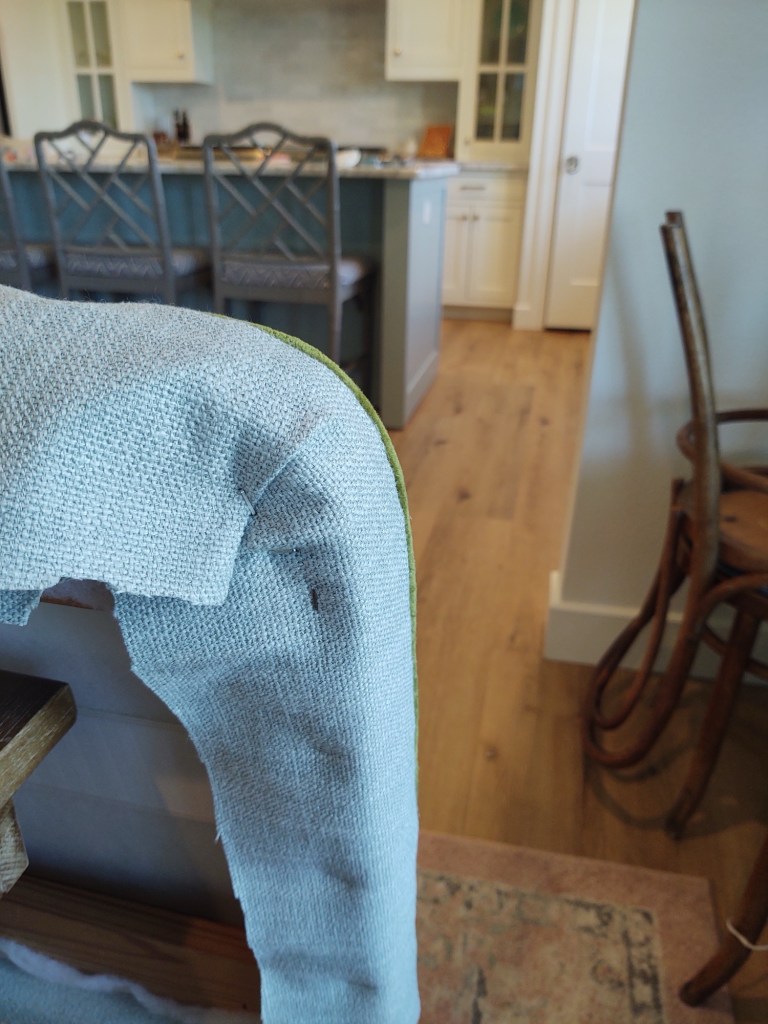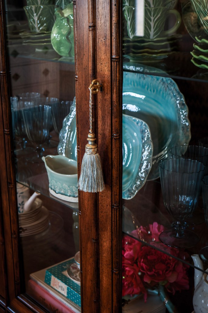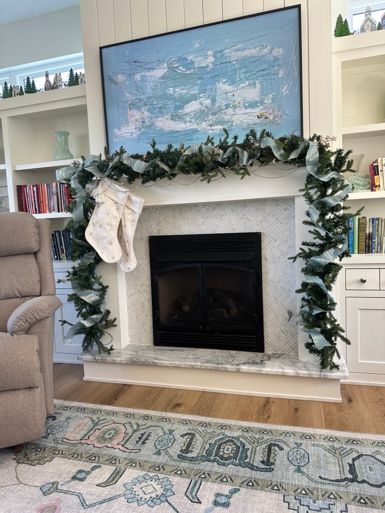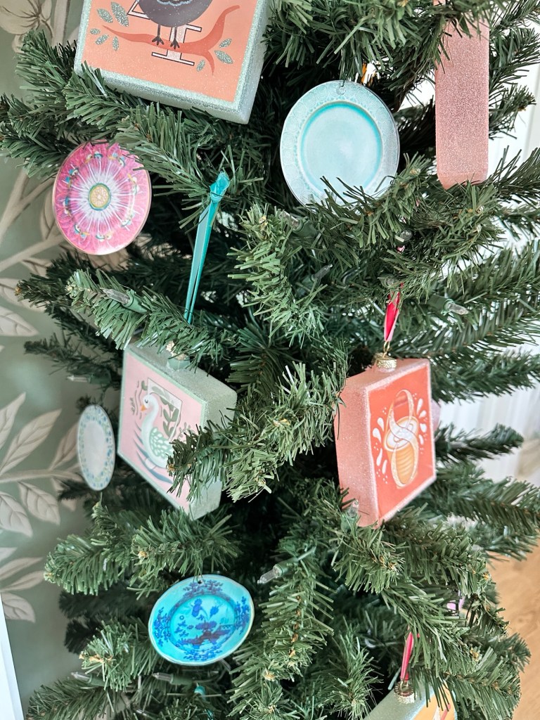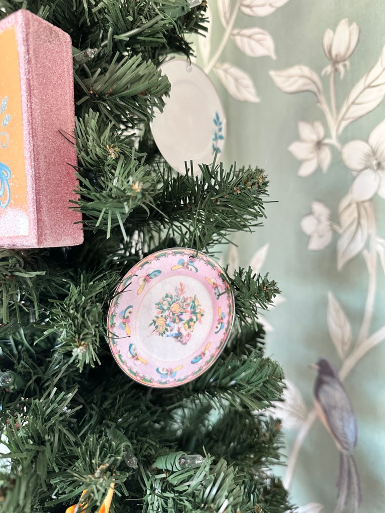 I saw these ornaments on Instagram and knew I had to make my own with my Old Havana dishes from Anthropologie. I decided to have two trees downstairs, since I wanted to be able to see the lights from outside. I bought another 7′ pencil tree from Michaels to put in our dining room since the space is not big enough for a slim or full sized tree.