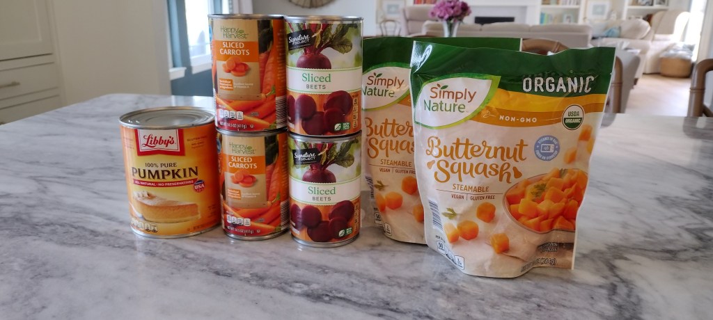 First, feel free to use fresh ingredients. I am the worst at using fresh produce before it goes bad. I work second shift, and our personal lives are so busy that I’ve learned to lean on canned and frozen produce when I can. I keep all these items on hand, and always pick up a few cans when I grocery shop.